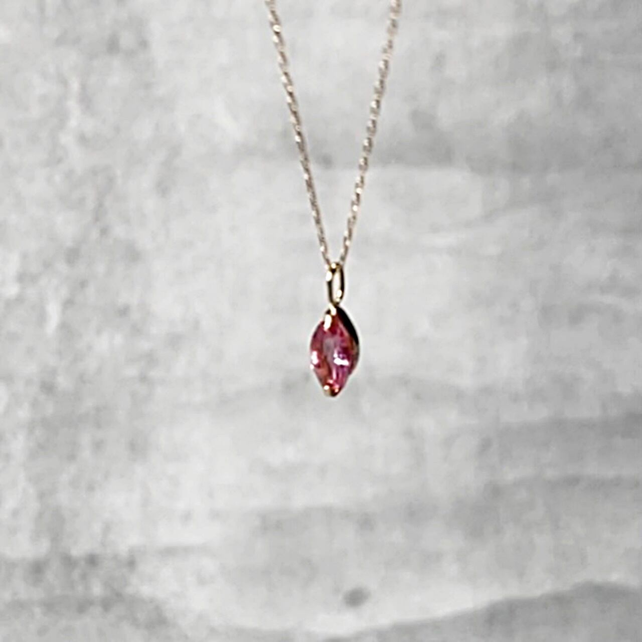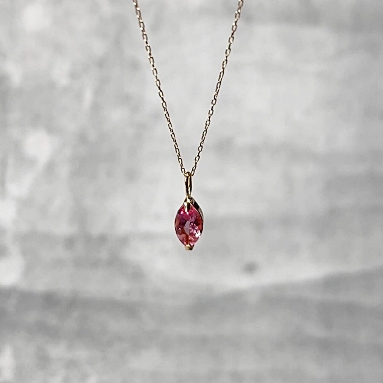 繊細なK18のあずきチェーンに、透き通るようなピンクトルマリンがキラリと輝きます。フォーマルシーンはもちろん、普段使いにも合わせていただける、一生モノのジュエリーです。