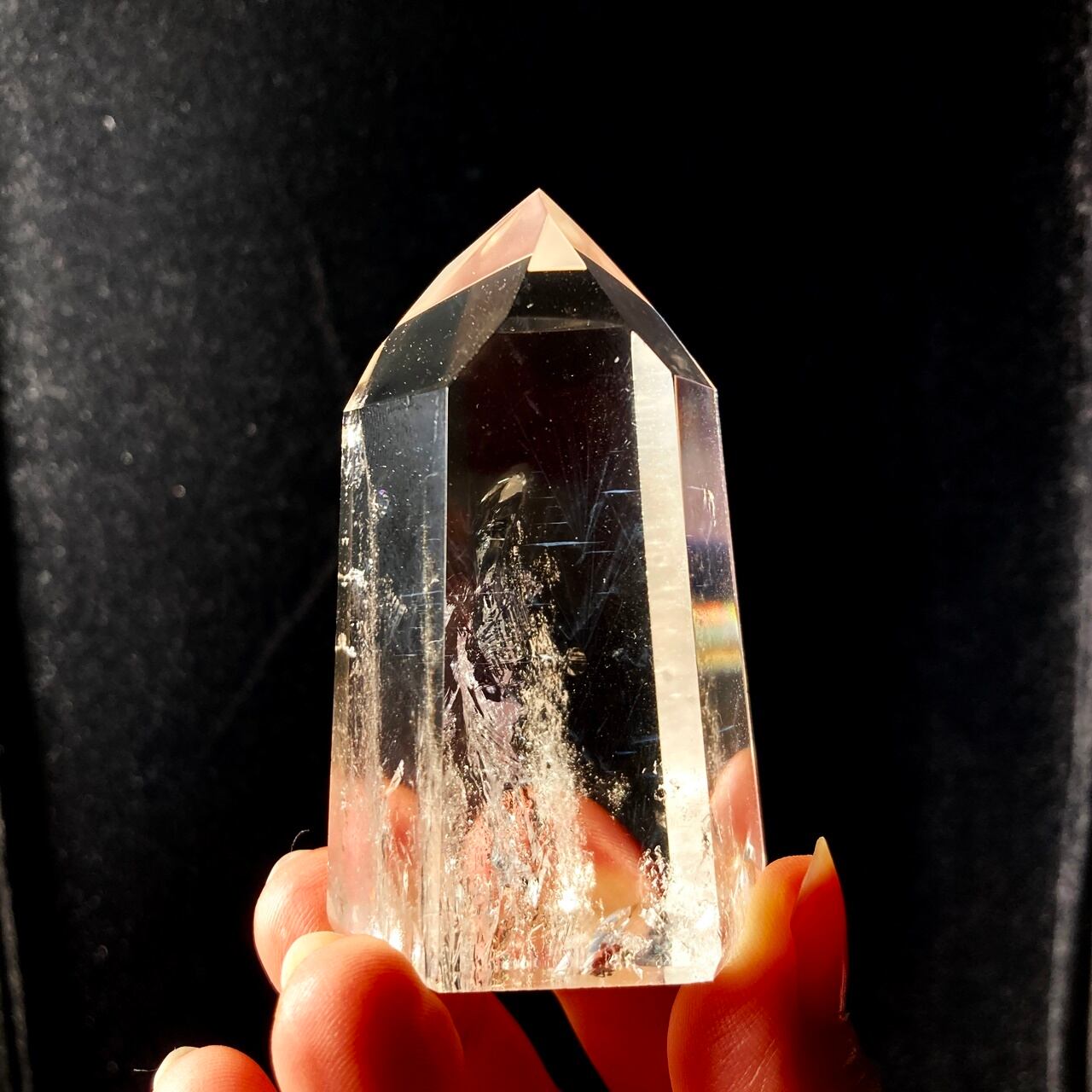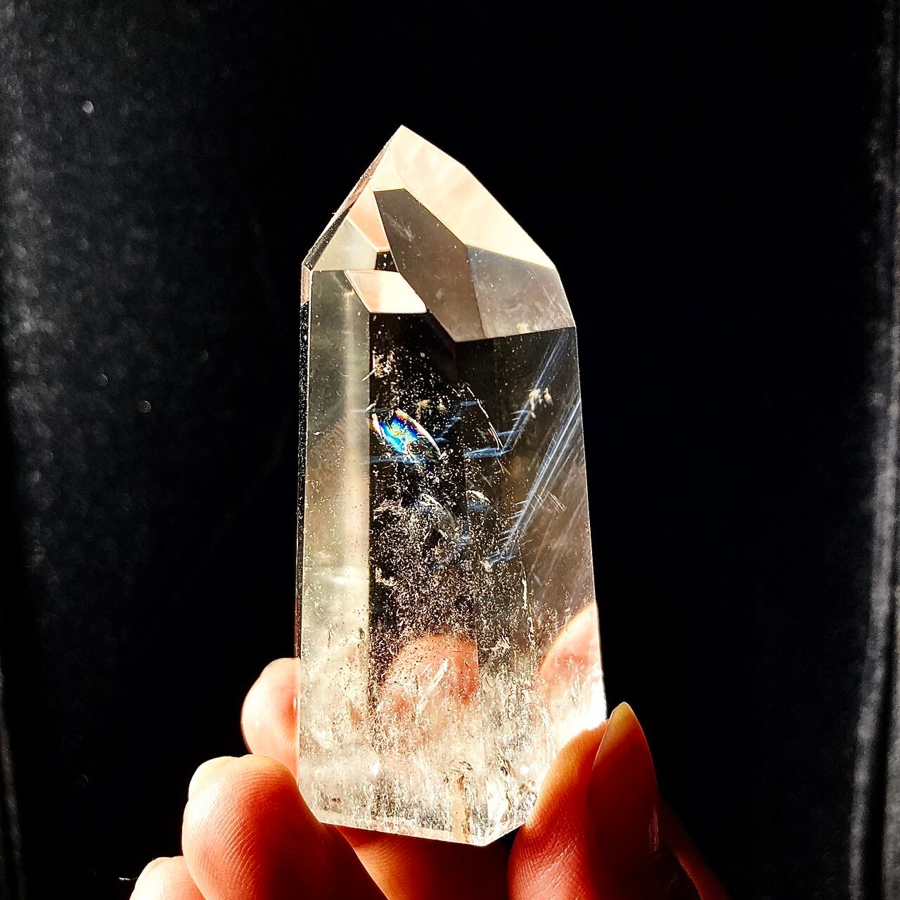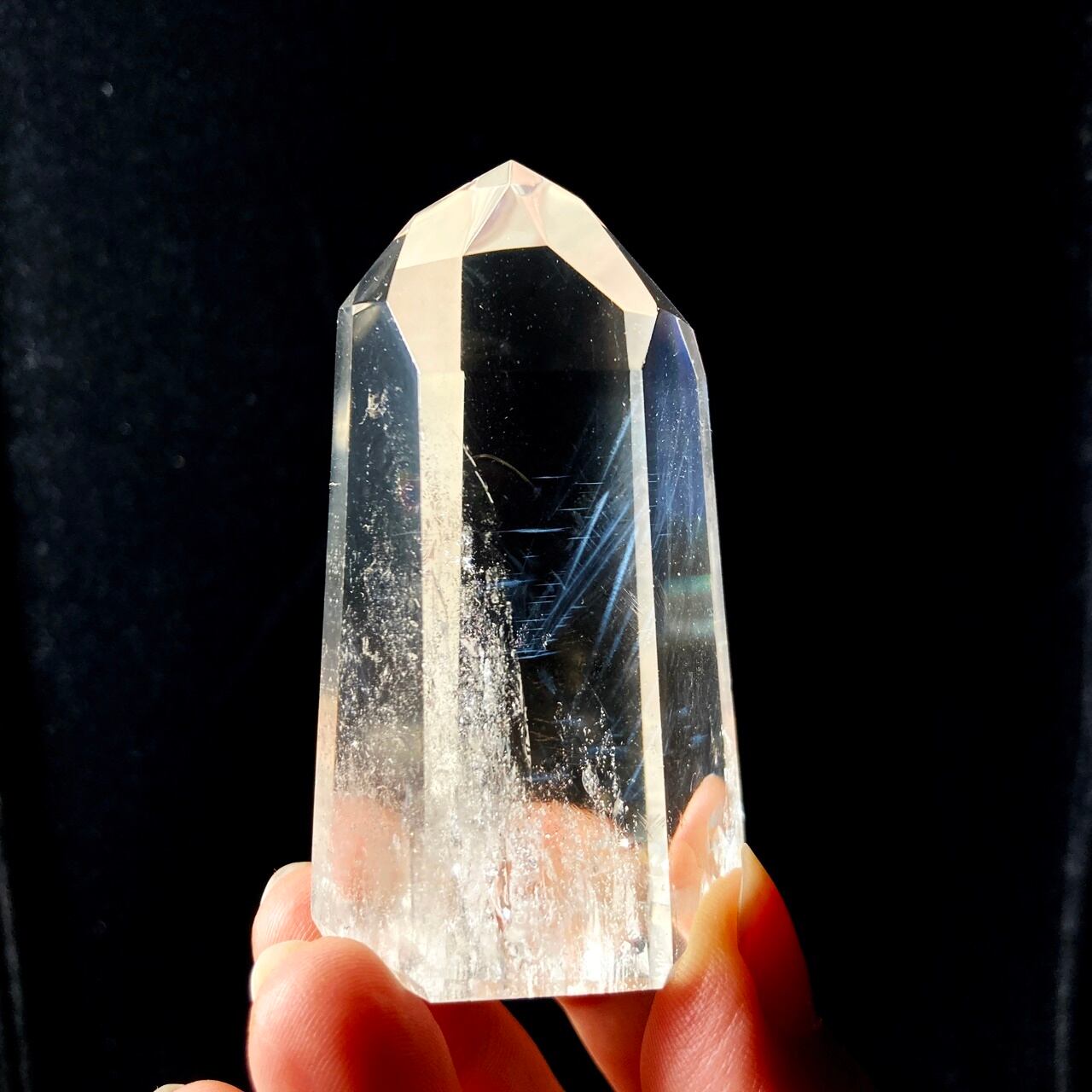 商品番号:CR-CRE-046 サイズ:W42mmxH72mm 重量:140g 産地:不明 クレパスキュラークォーツは、エンジェルラダークォーツとも呼ばれています。“天使のはしご”という意味のその名前には、この水晶の神秘性が表われています。一定の方向に光を当てると青白い光が浮かびます。その光がとても神々しいことから、天使が天上からおろしたはしごのようだとされたのです。 クレパスキュラークォーツは、この石が持つ希少な光から、未来を照らす水晶だと言われています。
